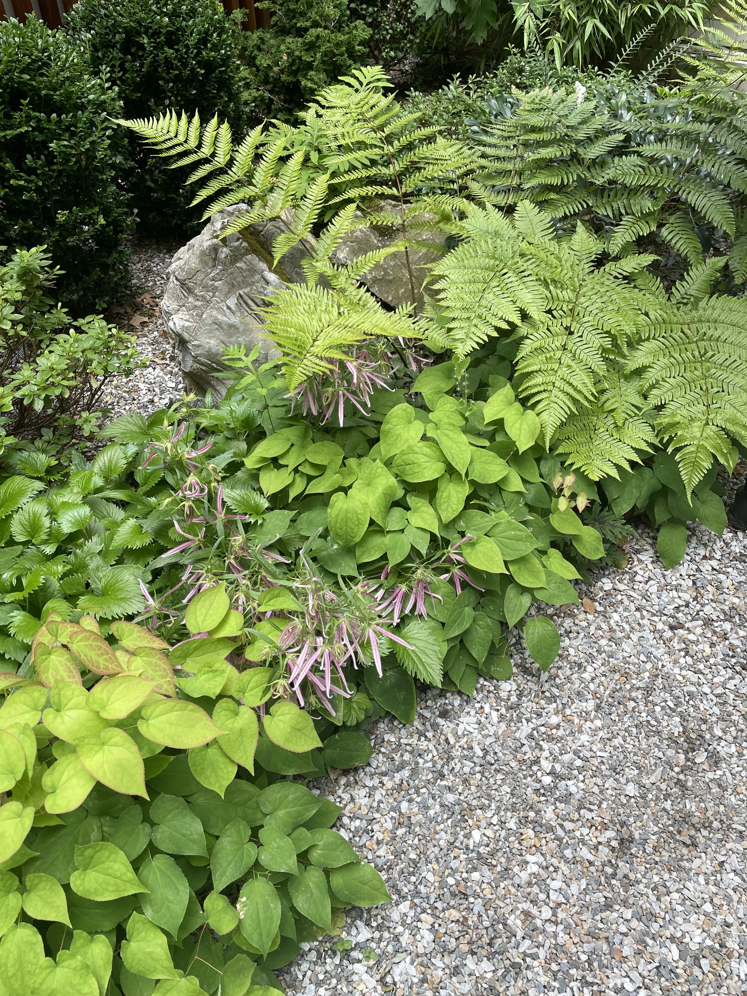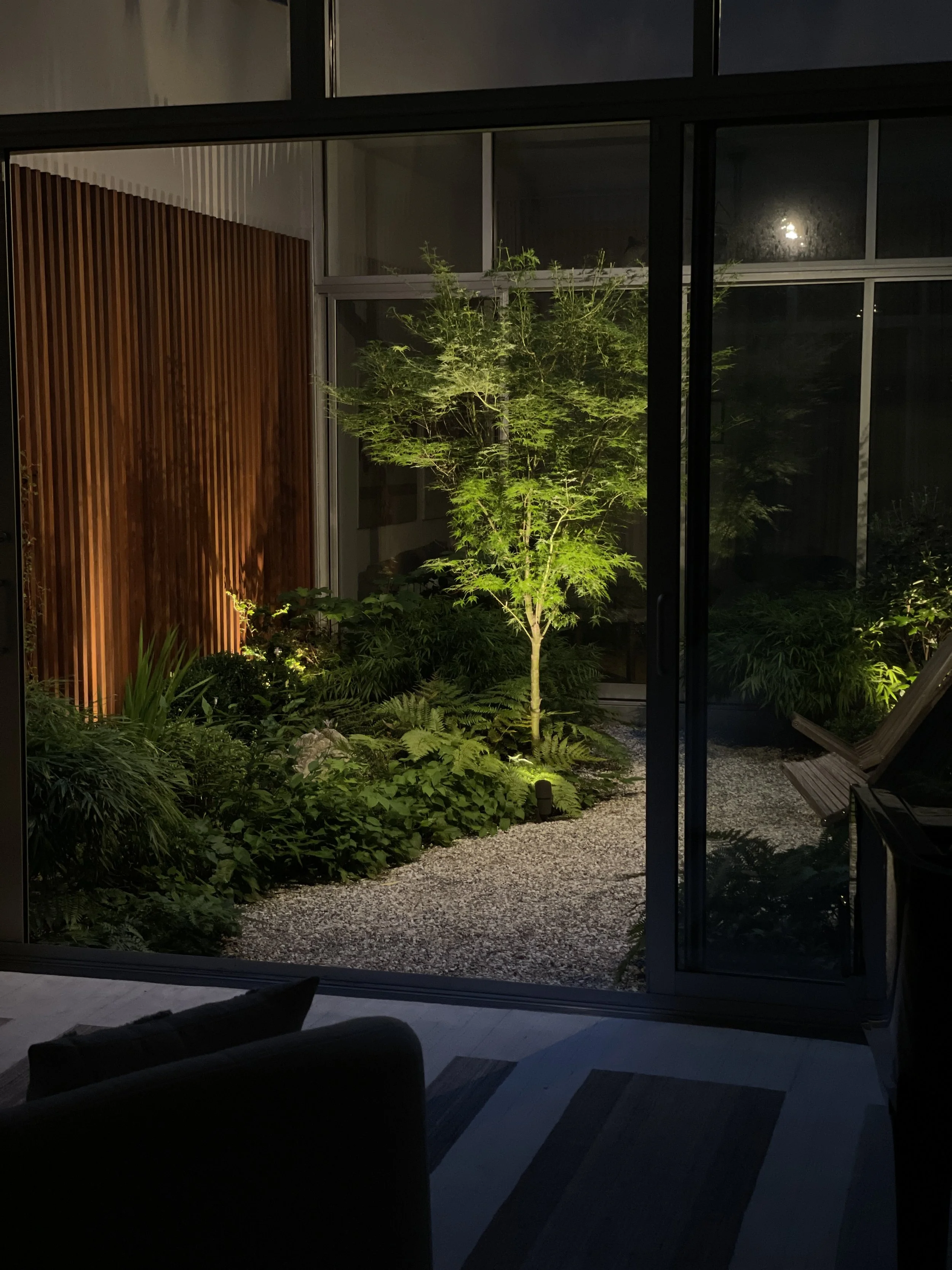 The garden design is simple, Japanese inspired with a delicate Lace-leaf Japanese Maple as the focal point.